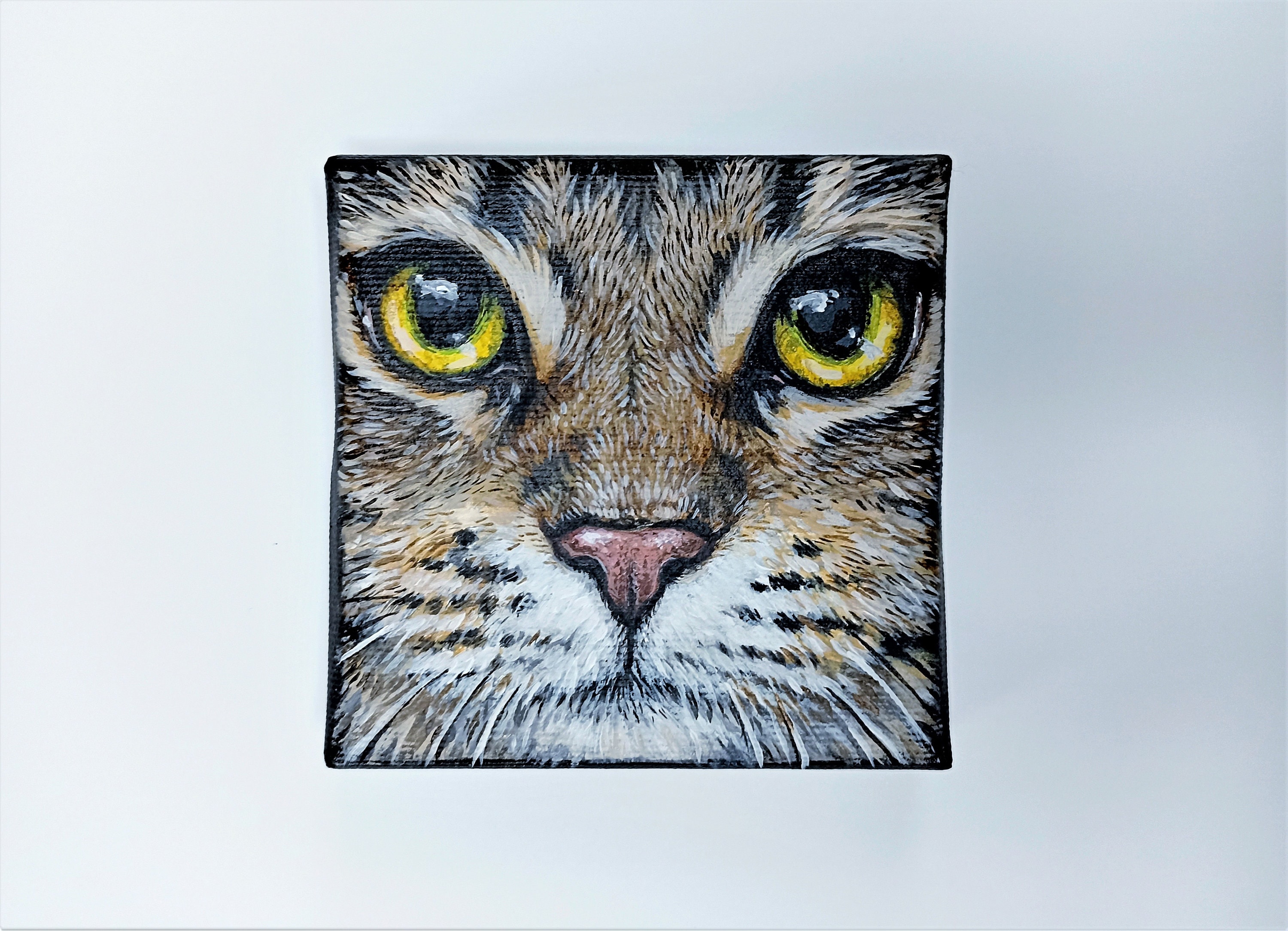 Cat Face Painting On Canvas 10 X 10cm Original Acrylic Etsy Uk